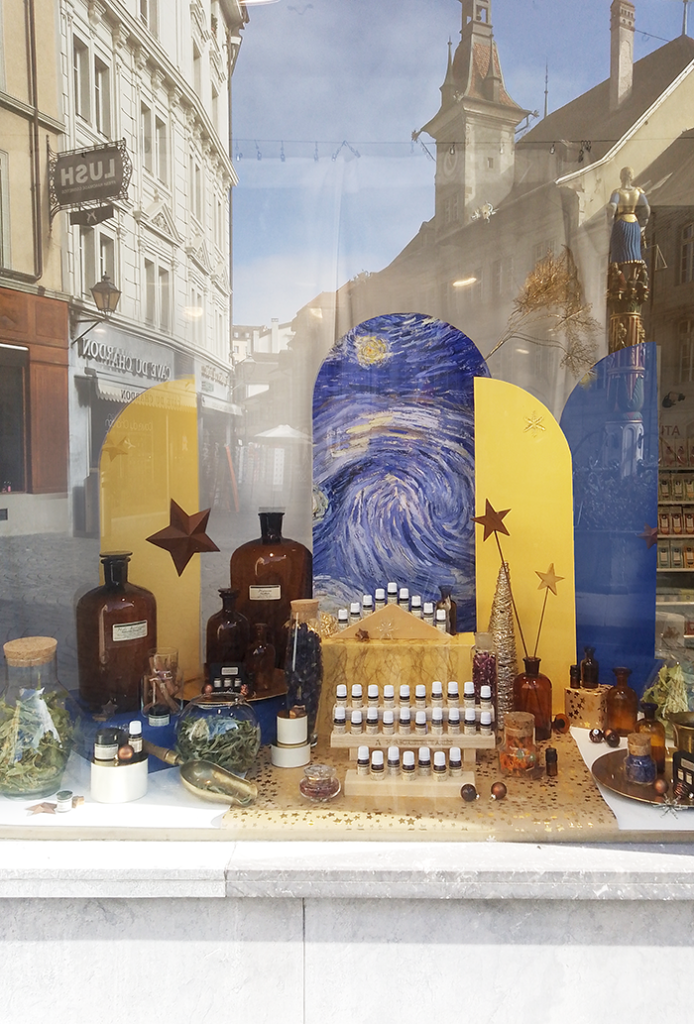 Vitrine Amavita nutribio Noël 2024 – Herboristerie Ariès ObjectifsDécoration et mise en valeurs des produits de l’herboristerie Ariès (plantes séchées, huiles essentielles, baumes à base de plantes)Matérialiser et rendre visible la dimension « sensible » des plantes. CréditsClient: ArièsPharmacie Amavita nutribio, place de la Palud 23, 1003 Lausanne Saison Noël 2024